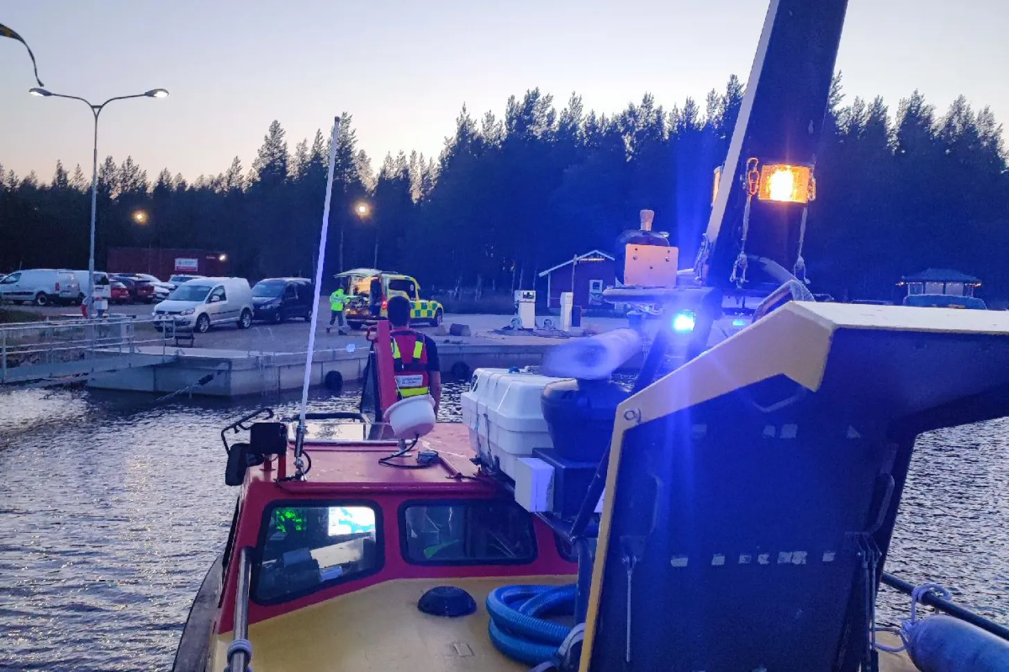 Under pågående bogsering av medlem får vi avbryta för att hjälpa ambulansen med ett ärende ute på en ö. Transport av person till ambulans i Marahamn.