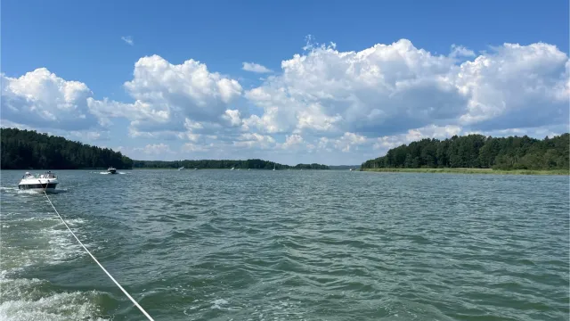 Medlem på väg ut för att bada får problem med motorn strax utanför Trosa där de ankrar i väntan på hjälp. Väl framme med Rescue Lillie af Vivesta kopplar vi upp båten på släp och drar in till hemmahamn i Trosa.