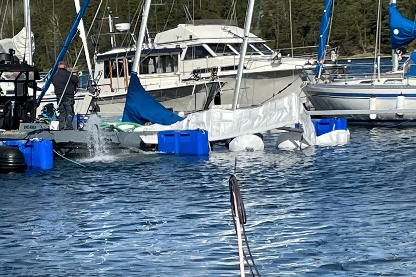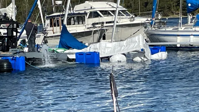 Båt som sjunkit vid brygga och endast två master sticker upp över vattenytan. Rescue Paul Lederhausen bistår räddningstjänsten när länsar läggs ut vid objektet för att begränsa utsläpp av diesel. KBV och sjöpolisen ansluter. Rescue Paul Lederhausen kan återgå hemmahamn.