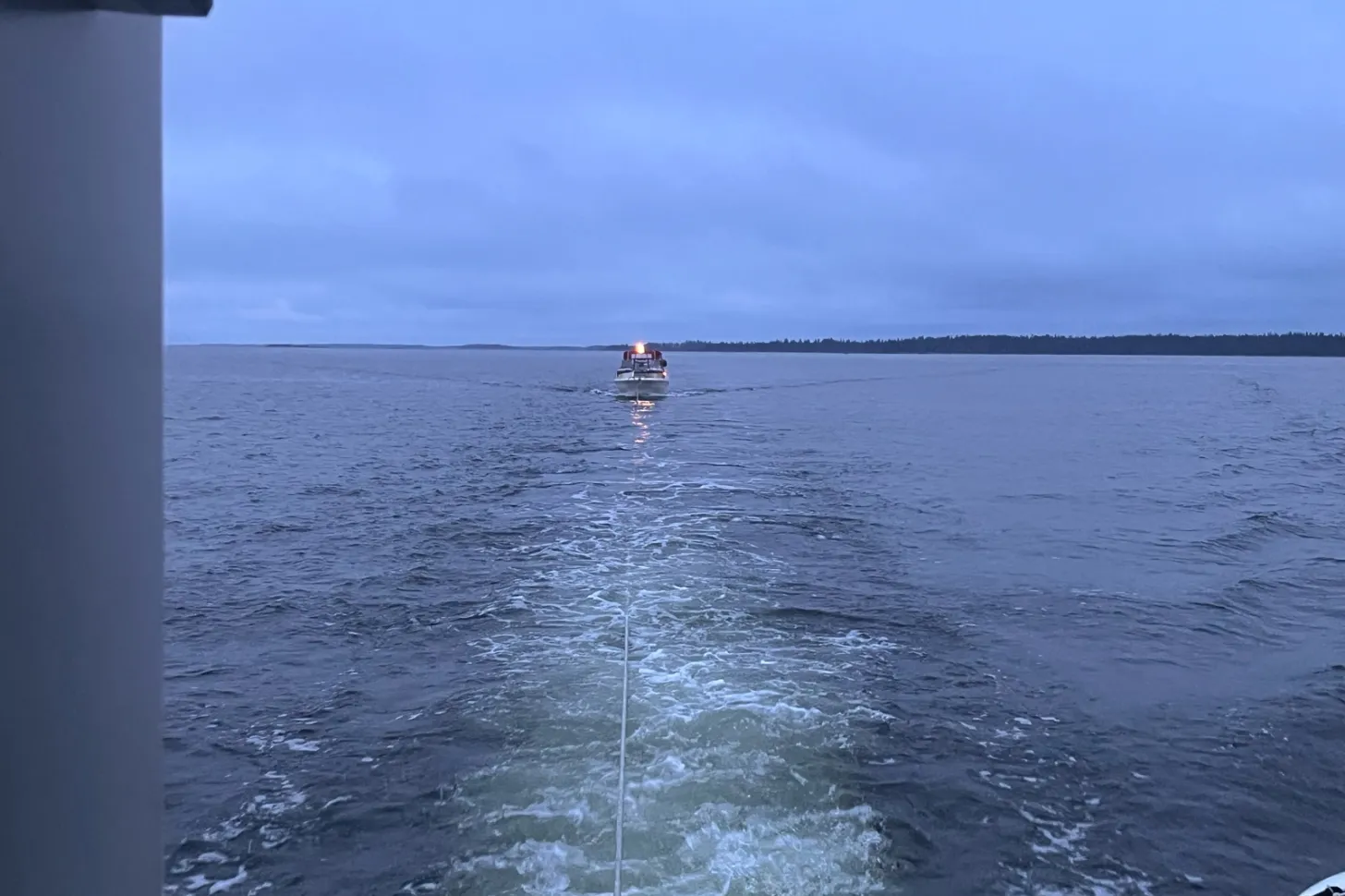 Åtta meters motorbåt med en person ombord får problem med bränslet. Motorn går inte att starta. Vi beslutar i samförstånd med ägaren av båten att bogsera till närmsta hamn.