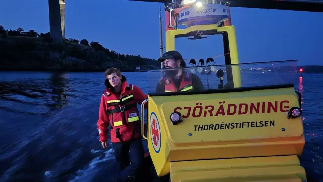Under kvällen hör en medlem av sig då denne fått stopp på sin motor i båten. Vi åker till platsen med Rescue Thordenstiftelsen och 3 frivilliga sjöräddare. Väl framme bogserar vi båten till säker hamn som finns i närheten