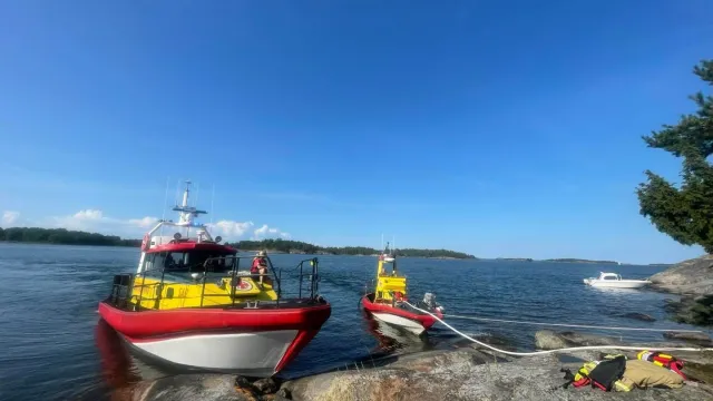 Vi hinner precis hem till kaj efter en förebyggande utryckning då RTÖG (Räddningstjänsten i Östra Götaland) önskar vår hjälp med att släcka en brand på en ö som troligen startat av ett åsknedslag. Nu avgår vi även med vår lilla båt Rescue Ingrid af Slättö som har en större brandpump ombord. Efter någon timme bedömer räddningstjänstens insatsledare att branden är släckt. Ingegerd Ramstedt återgår till Arkösund med brandmännen från RTÖG