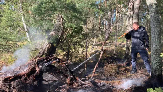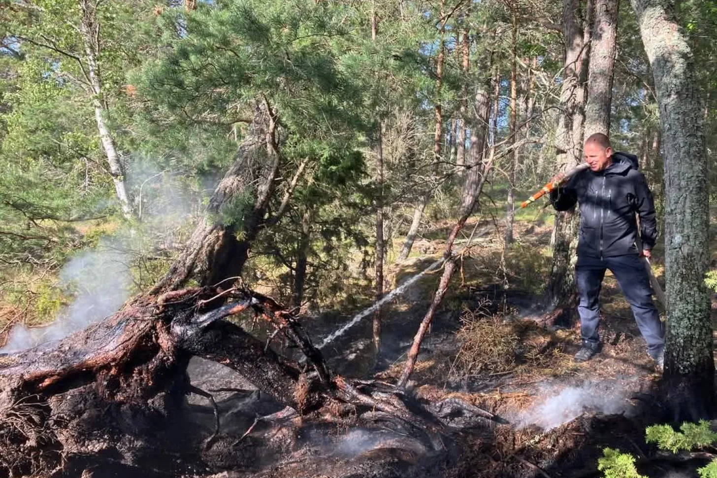 Strax före klockan 17 på lördagen får vi larm om att det brinner på en liten ö söderut i vårt område. Rescue 913, som precis kommit till kajen efter en övning, lastas med pump och slangar och kör i förväg mot positionen. Under tiden bemannar vi också Rescue Ingegerd Ramstedt som förstärkning. På plats på ön visar det sig att det handlar om en mindre brand. Efter någon timmes släckningsarbete kan vi lämna ön och återgå till stationen.