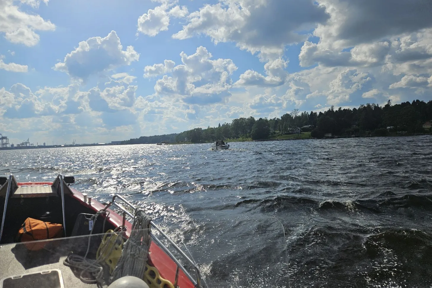 Samtal till medlemcentralen om en medlem som fått slut på diesel, ankrat och begärt assistans. Råder osäkerhet om det är motorkrångel eller brist på bränse. Vi fyller 20 l diesel och följer haveristen till hemmahamn, utifall något annat skulle inträffa. Resan hem går bra.