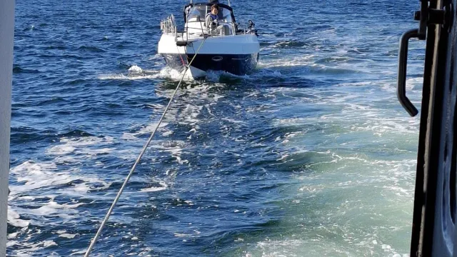 En sex meters motorbåt med två personer ombord hade fått bränsleproblem. Låg vid Halmstad angöringsboj. Vi kopplar upp och bogserar in till Grötvik.