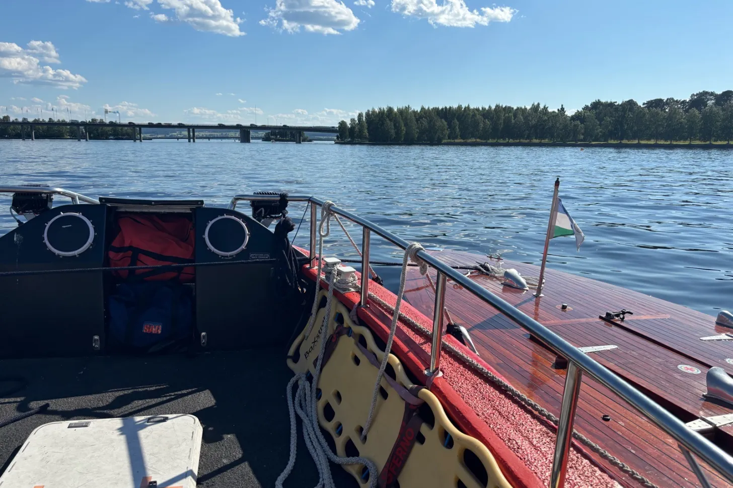 Medlem med motorbortfall, drev manöveroduglig mellan Jamti o Frösön. Medlemmens båt kopplades vid sidan och bogserades till trygg båthamn. Vi tackade för oss och återgick till hemmahamn, redo för nya uppdrag.