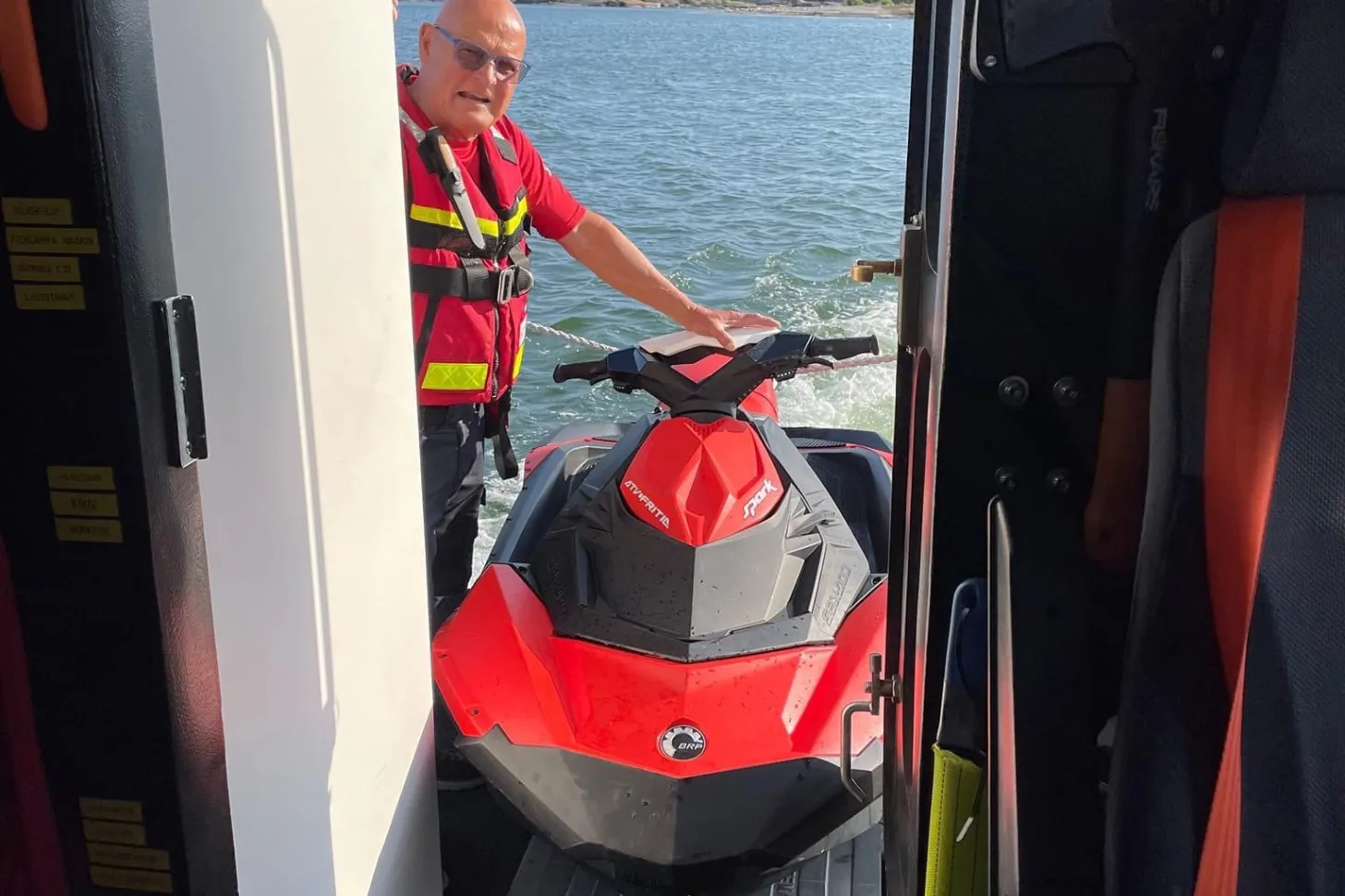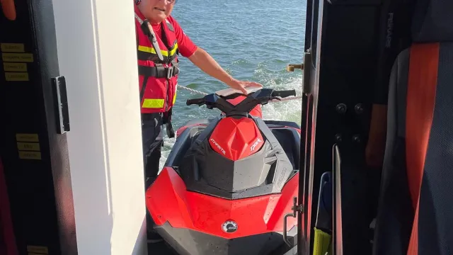 Tidigare ikväll blir vi kontaktade av en medlem med vattenskoter som fått fel på maskin och som befinner sig på en position strax syd Arkösund. Vattenskotern, som var av det mindre slaget, drogs upp på Rescue Ingegerd Ramstedts akterdäck och därefter transporterade vi vattenskotern och dess förare till Arkösund.