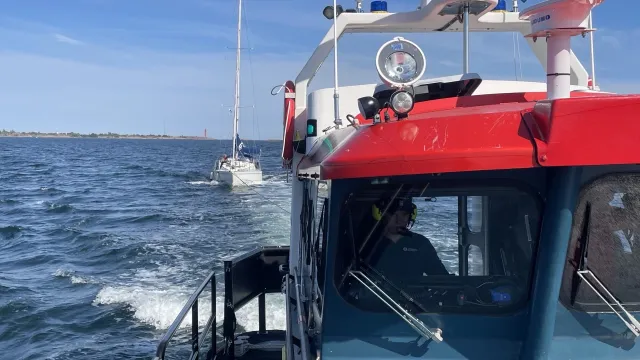 Ytterligare ett uppdrag. Vi får samtal från ett par som ligger vid Häradsskär med sin segelbåt. Propelleraxeln har lossnat i drevet och de riskerar kraftig vatteninträngning om den åker ut. På plats med Rescue Ingegerd Ramstedt låser vi axeln med några slangklämmor innan vi påbörjar bogsering till Gryts varv där medlemmarna får fortsätta att fira sin ettåriga bröllopsdag med god mat.