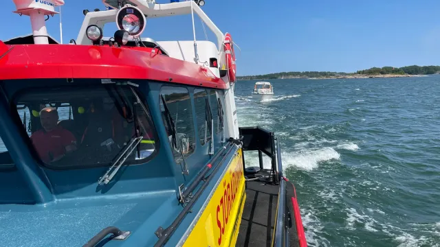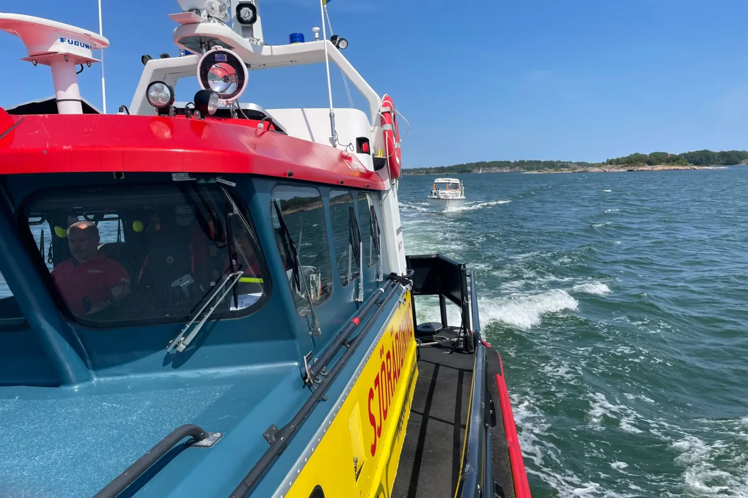 Vi får samtal från en medlem med maskinhaveri, positionen är Gubbön. Personerna i båten har försökt ankra men ankaret tar inte så de ligger mot ett berg och håller ifrån båten med armar och ben. På plats kopplar vi bogsertross för bogsering till båtägarens hemmahamn i Fyrfjärden.