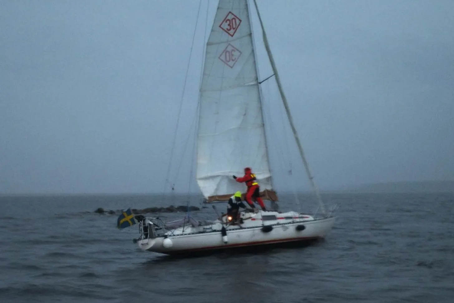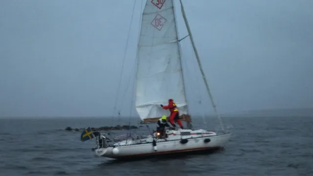 Ett av Sjöfartsverkets fartyg hör ett nödmeddelande från en segelbåt som gått på grund. Vi avgår med både Rescue Kersti Hydén och Rescue Sonja Margith. På plats är det dimma och även regn. När Rescue Sonja-Margith anlände så går de fram till haveristen och påbörjar lossdragning. När de kommit ut på djupare vatten kopplar Rescue Kersti Hydén upp för bogsering in till Kalmar.