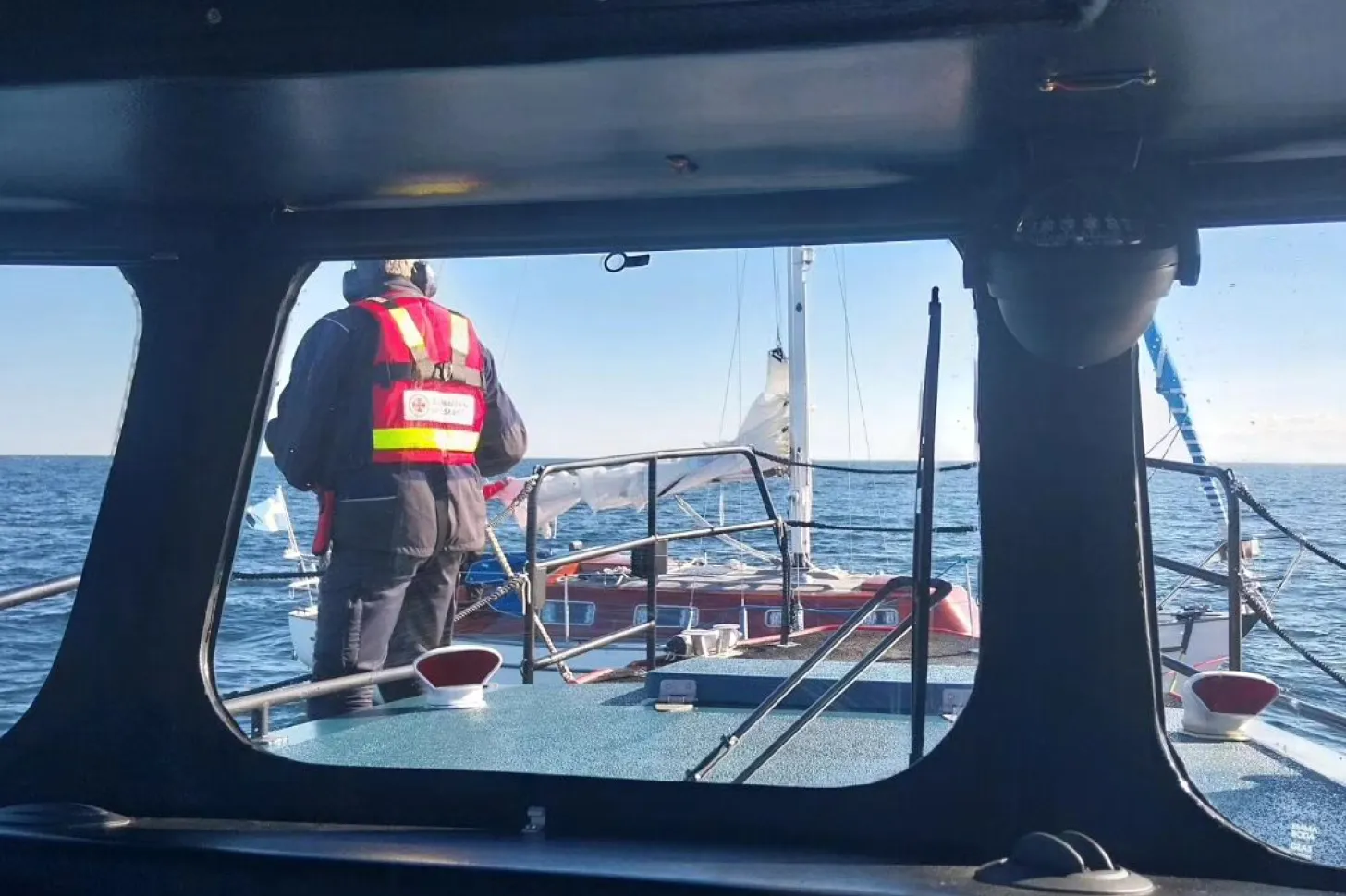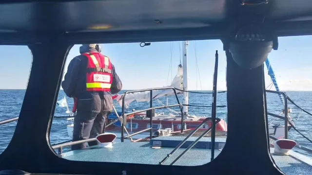 Samtal från en dansk ensamseglare som fått maskinhaveri och som dessutom är rätt utmattad på grund av för lite sömn. Vi går med Rescue Ingegerd Ramstedt mot aktuell position ost Häradskär och bogserar till Fyrudden.