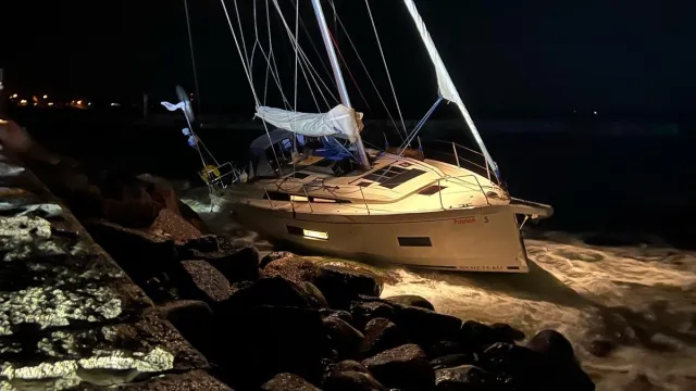 Larm från Sjö och flygräddningscentralen JRCC klockan 21:30 om en segelbåt på grund i hamninloppet i Grönhögen. Avgår strax efter med Rescue PG Traung och Rescue Stig Wadström. Strax innan ankomst till haveristen får vi besked att kollegorna på RS Grönhögen har evakuerat alla personerna ombord. Då vi nästan är framme forsätter vi för att se om vi kan bistå på något sätt. Segelbåten står hårt på grund i den kraftiga sjön som råder och vi bedömer att lossdraging kan inte göras på ett säkert sätt. Vi återgår stationen och återställer båtar och utrustning.