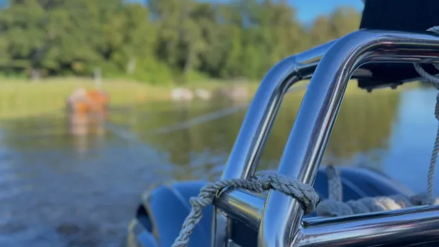 På onsdag eftermiddag ringer jourtelefonen, en medlem har fastnat på en lerbank i Tolgasjön. För frivilliga i Växjö betyder det en ganska lång resa med slussning upp i sjösystemet. Efter en stund hittar vi medlemmen som sitter ganska hårt fast. Vi kontrollerar båten så den inte tagit in vatten därefter kunde vi dra loss, en ny kontroll visade att inget vatten trängde in. Medlemmen kunde då köra på egen hand till sin brygga. Vi följde efter för att se att det gick bra därefter slussade vi ner och satte kurs tillbaka till stationen för att återställa och tanka.