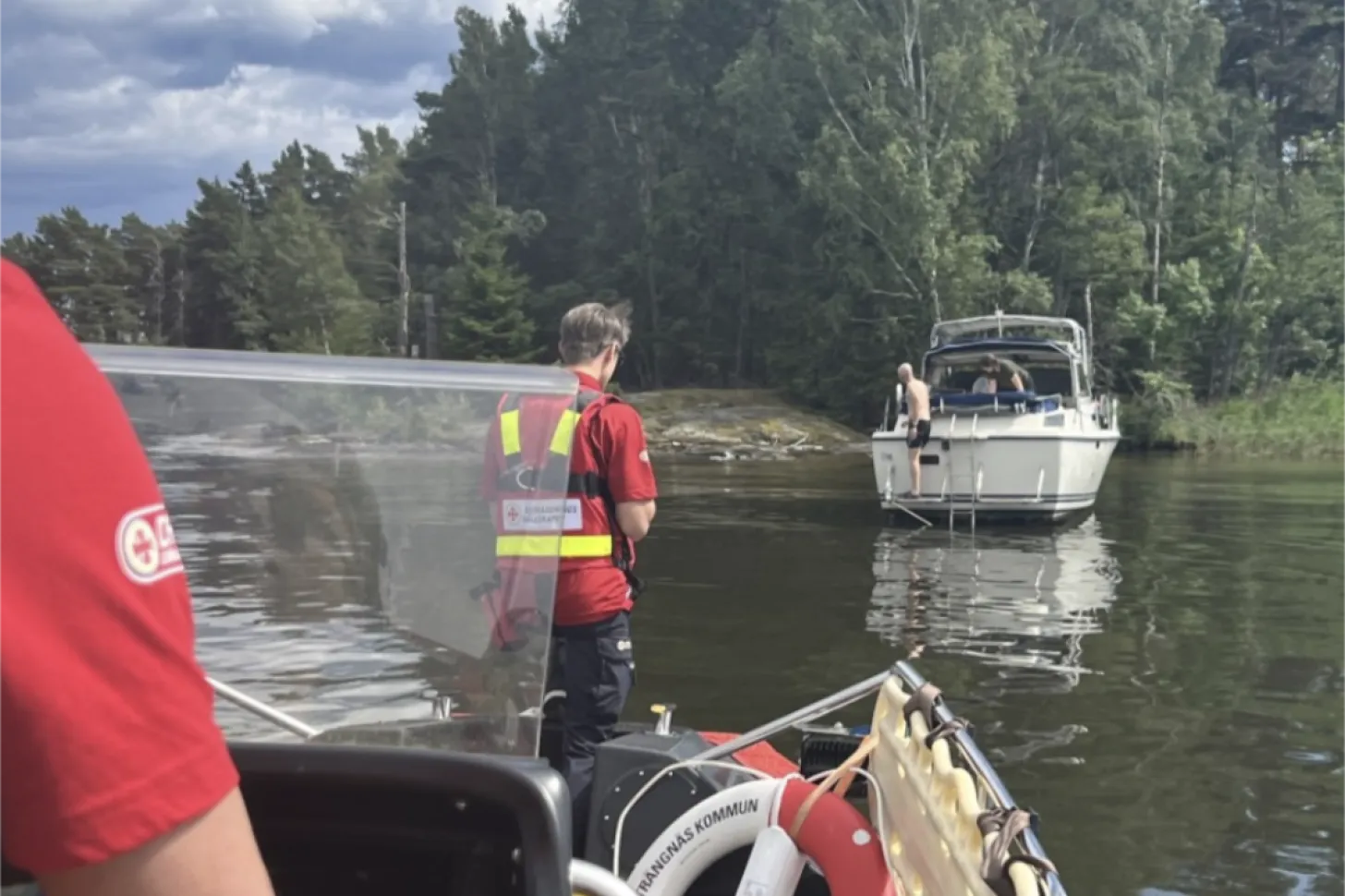 Medlem stod fast på en sten med kölen. Vi fick luta båten och dra den bakåt loss från stenen varpå medlem kunde fortsätta sin resa.