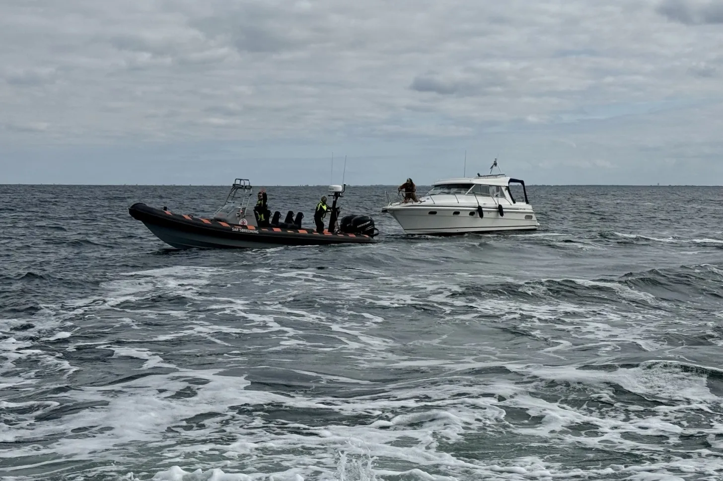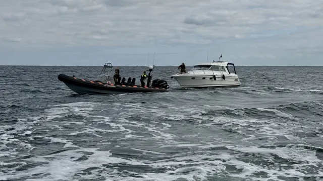 En motorbåt med 2 pers ombord har problem med drevet utanför Skanörs hamn. Vi drar haverist till danskt vatten där Rescue Saga från DSRS Køge tar över vidare till hemmahamn.