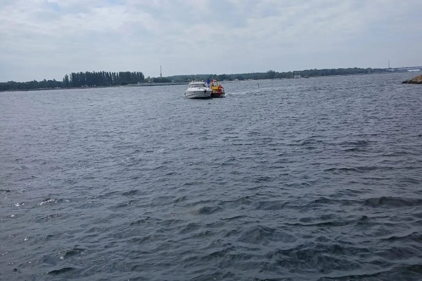 Grundstött motorbåt 10 meter med två personer ombord. De har problem med drevet och vi bogserar in till hamn.