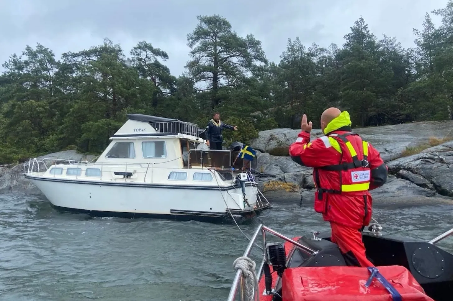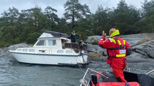 Båten la sig med sidan mot klipporna och slog hårt mot berget. Personerna ombord begärde hjälp när de inte kunde ta sig därifrån för egen maskin. Vi avgick ifrån Arkösund med Rescue Ingrid af Slättö direkt och hann fram innan någon skadat sig. Vi kopplar an och hjälper dem till säker plats där vi gemensamt konstaterar att även båten klarade sig relativt bra.