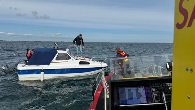 Mindre motorbåt på grund vid Segelskär SV Falsterbokanalen med skadad propeller som följd. Med hjälp av Rescuerunner F&B 2 drar vi ut haveristen på djupare vatten. Rescue Ruben Rausing bogserar sedan till säker hamn.