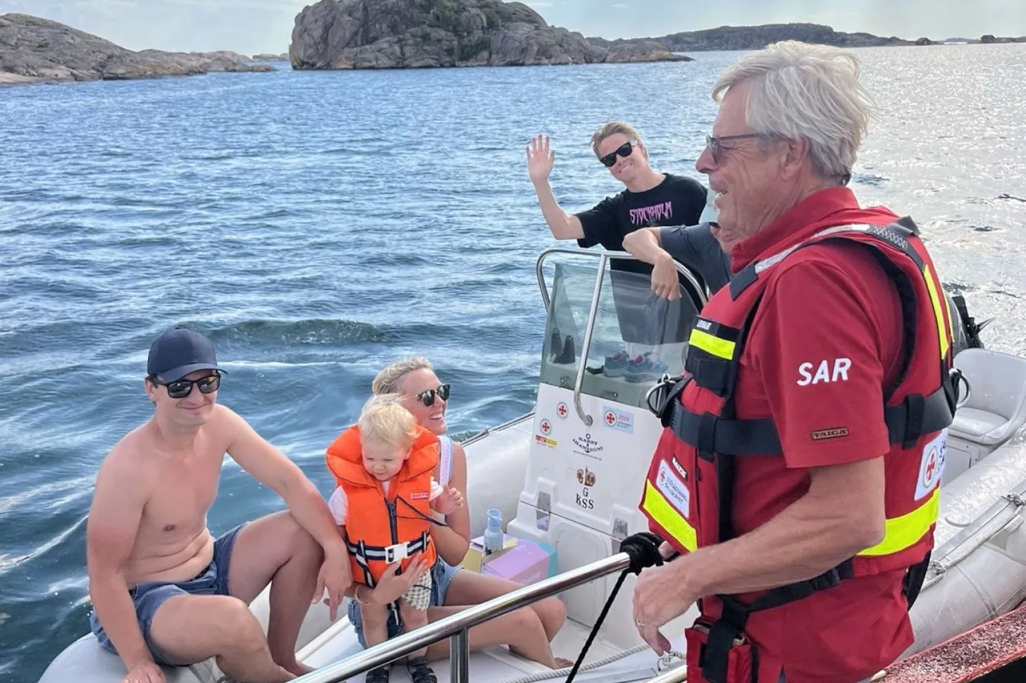 Ribbåt som fått motorhaveri och drivit iväg. Vi gick fram till haveristen och kopplade dom på vår sida för en kort bogsering till deras sjöbod som ligger i sundet.