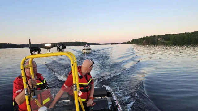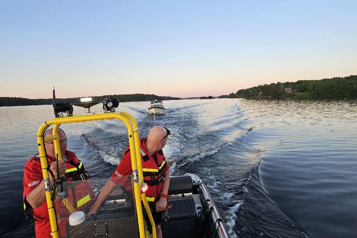Medlem med motorhaveri utanför Semla. Frivilliga sjöräddare i Barken hjälper medlem att komma till hamnen igen för att kunna laga motorn. Blev en trevlig kvällstur och medlemmen var tacksam för hjälpen.