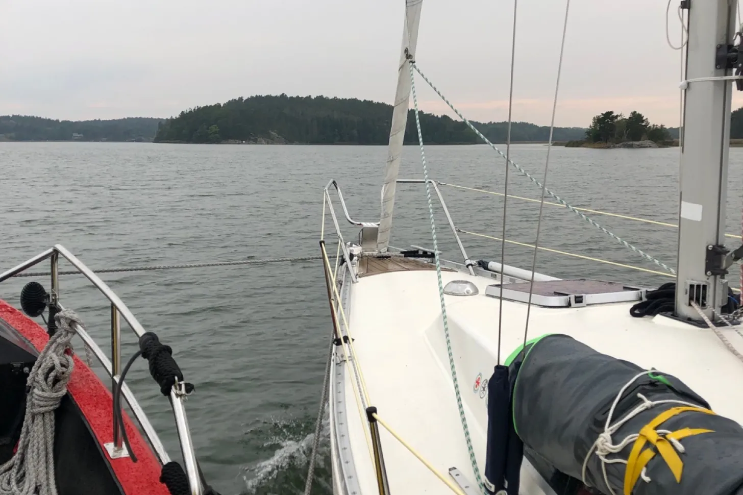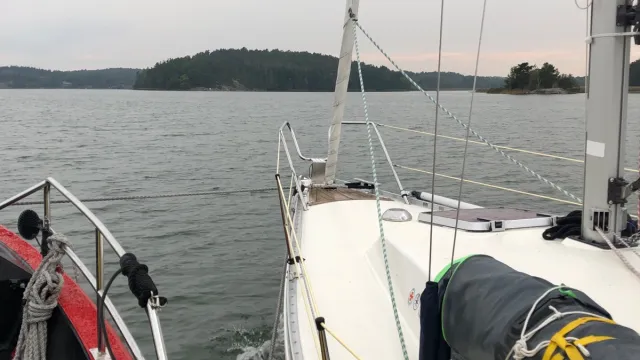 Båtägare med trasig startmotor kände sig osäker i dimman och ville ha assistans. Efter lite konferens om läget väljer de att segla in mot Trosa där vi möter upp och assisterar sista biten in till hamnen