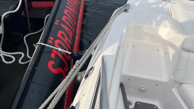 Vi blev kontaktade via jourtelefonen ang båt där motorn vill inte starta. Platsen är Östra stranden Helgasjön. Efter lite letande hittar vi rätt båt bland alla som solar och badar i det fina vädret. Bogserade till Evedal och tog upp på sidan strax utanför hamnen.