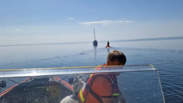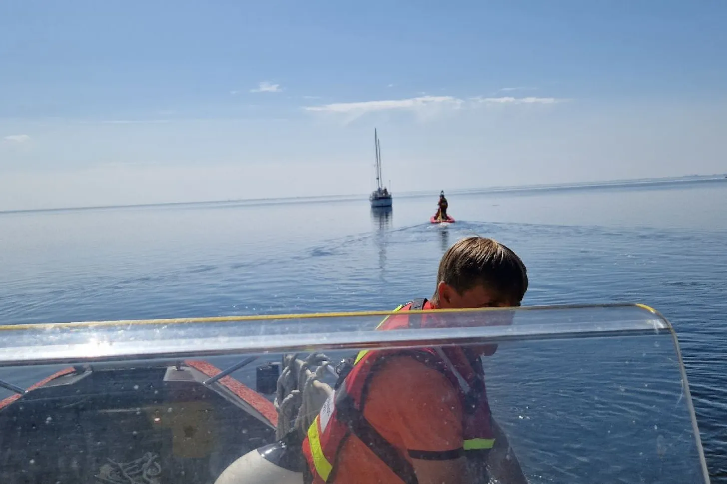 En 36 fots motorseglare hade kommit långt in på mycket grunt vatten söder om inloppet till Lundåkrahamnen I Landskrona. Lyckligtvis var vädret det bästa tänkbara, soligt och vindstilla. Efter att noga planlagt hur lossdragningen skulle kunna genomföras kunde vi med hjälp av vår grundgående Rescuerunner Er-Ho Bygg få över en lång bogsertamp till haveristen. Vår 8-metersbåt Rescue Sten-Clas kunde sedan försiktigt dra ut båten till fritt vatten. Efter kontroll av haveristens status kunde färden ut på Öresund fortsätta i det härliga sommarvädret.