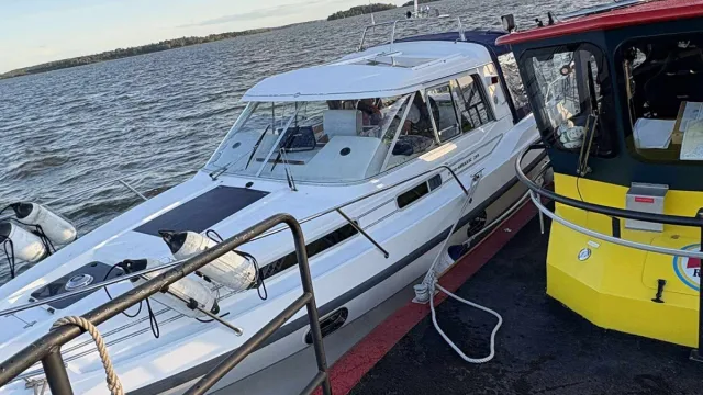 En båt fick motorstopp ute på vattnet. Vi åkte till platsen för att bogsera den tryggt tillbaka till hamn.