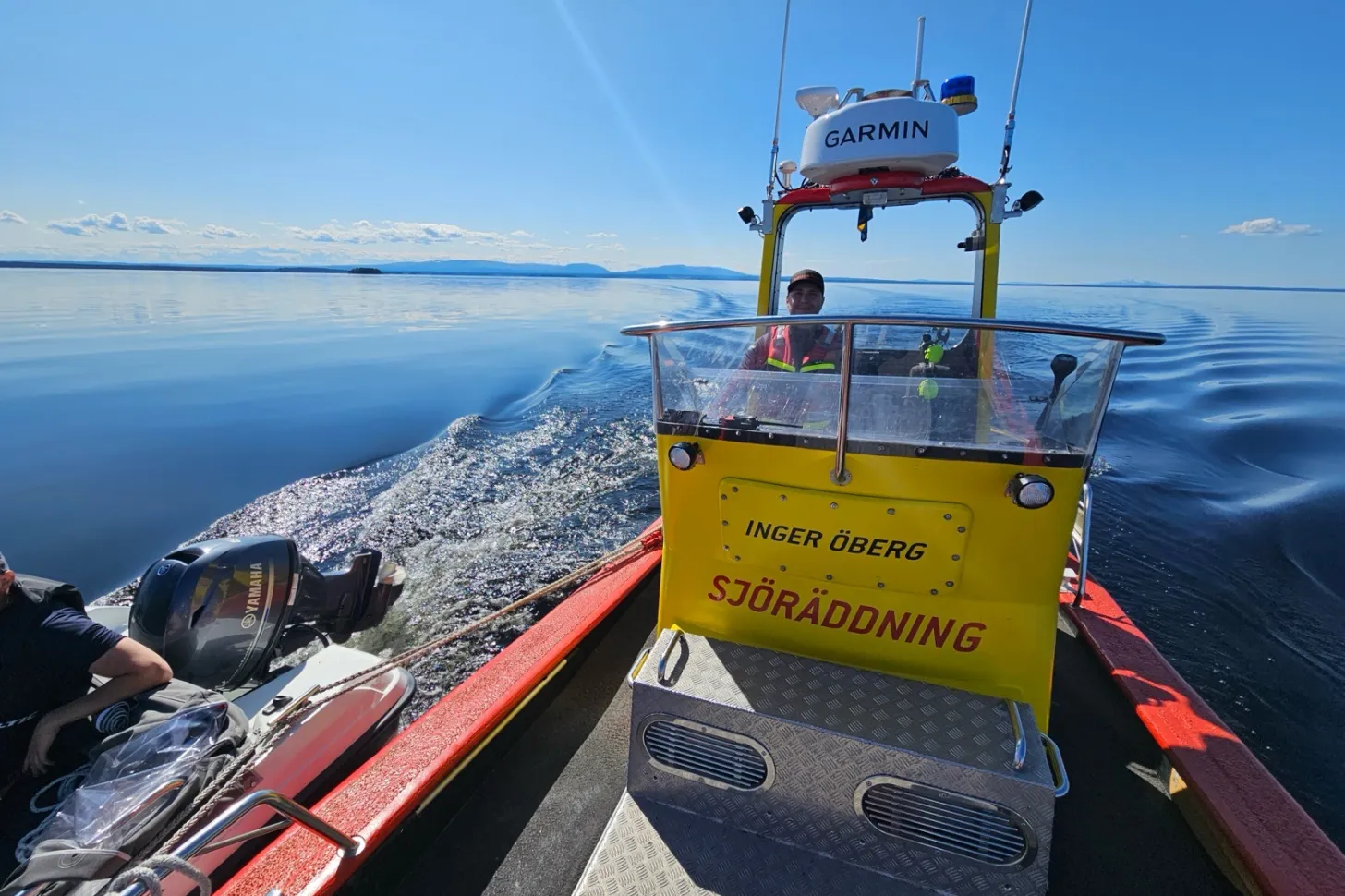 Mindre sportbåt med två personer ombord fick bränslestopp, efter dunkbyte gick inte motorn att starta mer än mycket korta stunder. Sol och vindstilla på platsen så vi kopplade båten vid sidan av Rescue Inger Öberg och förde båten till närmaste hamn. Efter att ha lagt medlemmen vid kaj tackade vi för oss och återgick till hemmahamnen, tämligen nöjda med att få hjälpt en medlem men också över ett par fina timmar i vackert jämtländskt väder.
