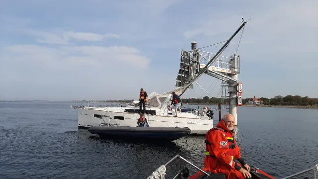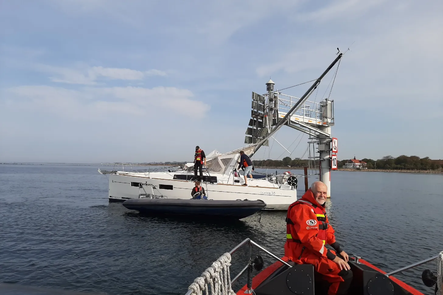 En större segelbåt med två personer ombord kolliderade med babordsmärket vid inloppet till Landskrona. Resultatet blev att masten knäcktes och fastnade i sjömärket. Efter larm från medlemscentralen, bemannade vi Rescue Sten Clas och satte kurs mot Landskrona. Efter att ha bedömt situationen, sänkte vi ned masten, säkrade den på segelbåtens däck och tog därefter haveristen långsides in till Lundåkrahamnen. Lyckligtvis var det mycket lugnt väder vid tillfället och inga personskador uppstod. Stort tack till Yacht Care Öresund som var på plats med sin ribb-båt och effektivt deltog i arbetet med att säkert ta ned masten från sjömärket och att få in haveristen till hamn.