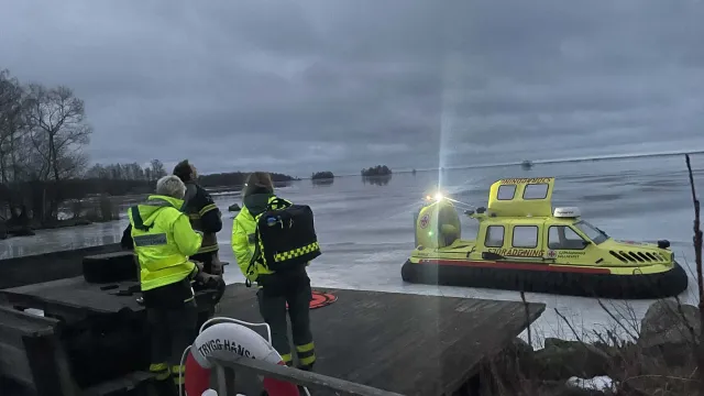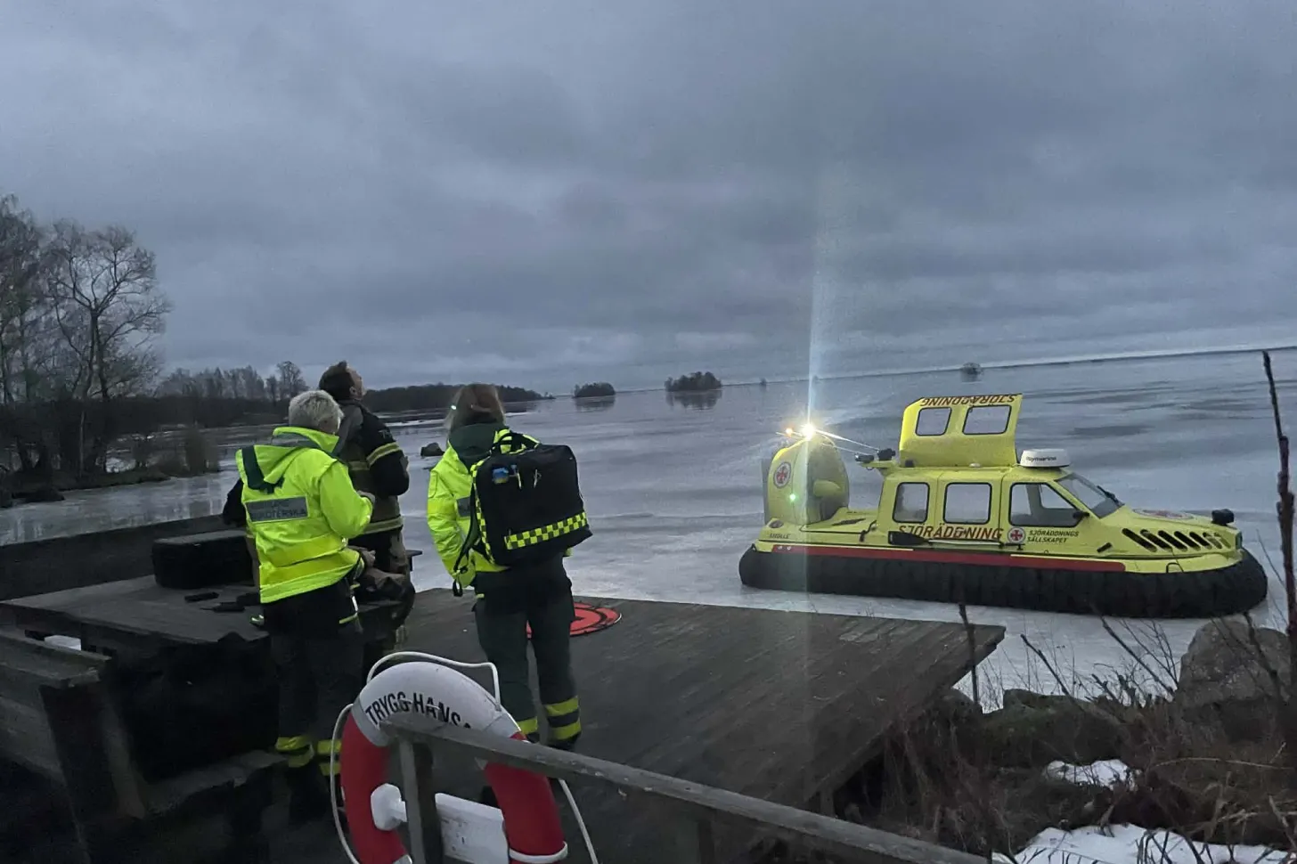 SOS Alarm Örebro larmar Sjöräddningssällskapets svävare på Vinön och ambulans om en patient som är skadad på isen i Hjälmaren. Vid ankomst hittas inte patienten på isen och det går ej att ringa upp inringaren som ringt 112. Drönare från Nerikes Brandkår larmas då samt Sjöräddningssällskapet Vadstena/Motala med förstärkningssvävare. Vi börjar åka mot platsen med svävaren från Vadstena/Motala men får då in ett annat akut larm vi behöver åka på. Larmet hanteras vidare av de andra larmade enheterna.