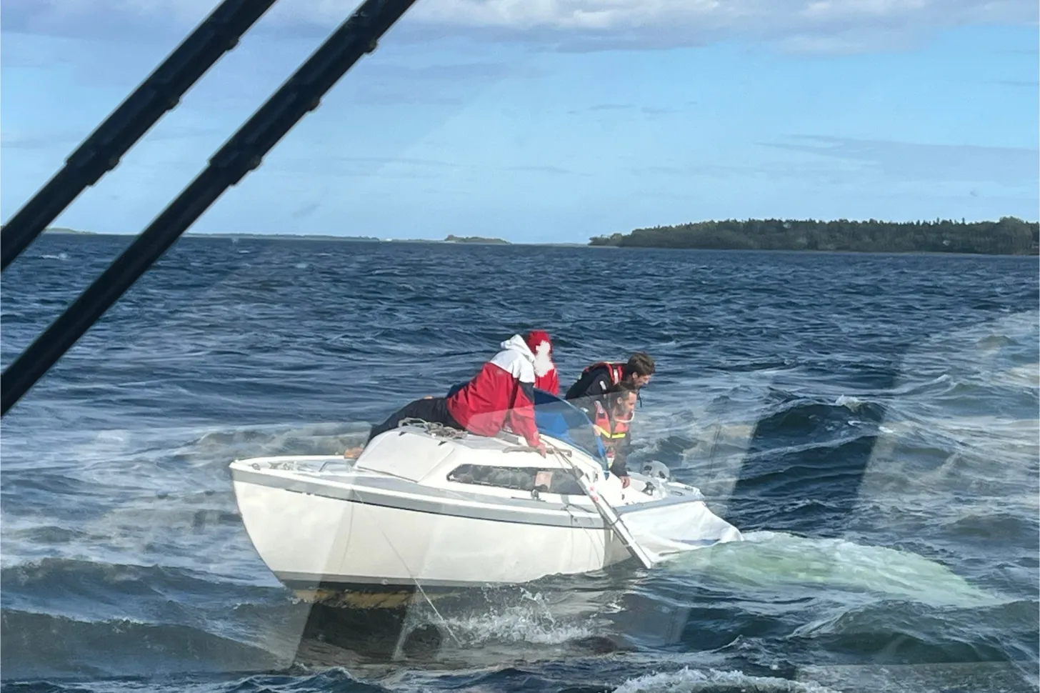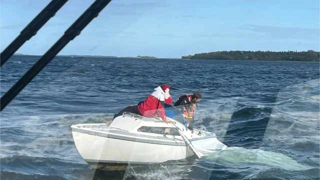 Samtal från en privatperson som råkat ut för ett rigghaveri på sin segelbåt, i den friska vinden. Avgår med Rescue Vialla, väl framme sätter vi över två sjöräddare som hjälper till att bärga segel och rigg. Allt väl med alla ombord. Bogserar till säker hamn i Furusund och bjuder på kaffe ombord. Allt väl.