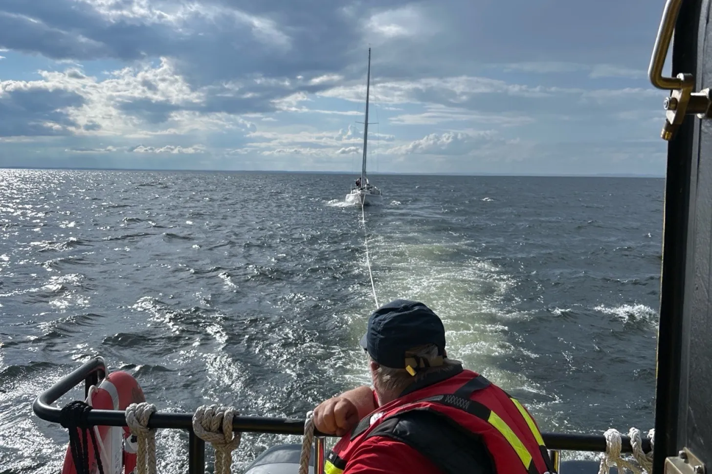 Vi får samtal om en segelbåt med motorproblem som behöver hjälp vid Gunnarsholmen i Lurö skärgård. Vi bemannar Rescue Iris och går mot haveristen. Vi kopplar och bogserar in till säker hamn och därefter återgår vi till stationen i Hörviken.