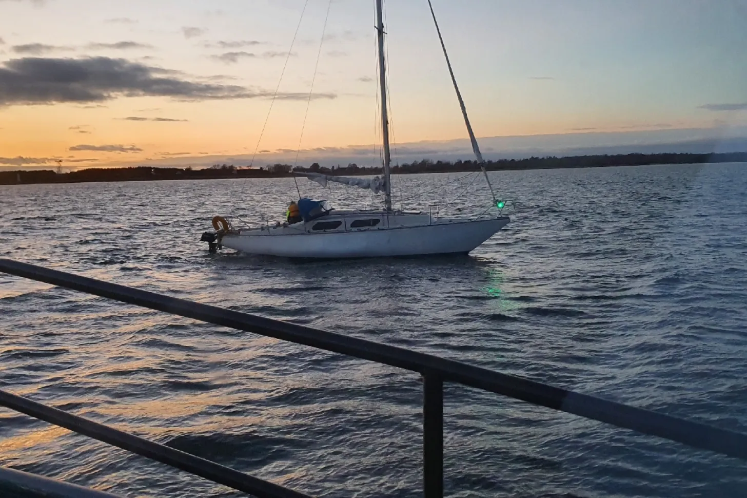 Segelbåt med roderhaveri öster om Utlängan. Vi bogserade in båten till Sandhamn och där efter blev det mörkernavigering till hemmahamnen på Hasslö.