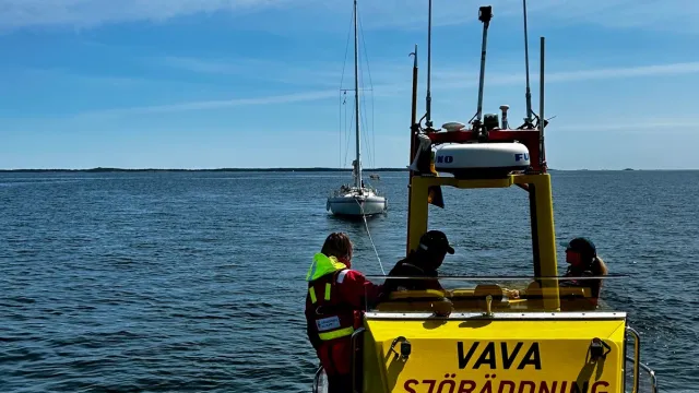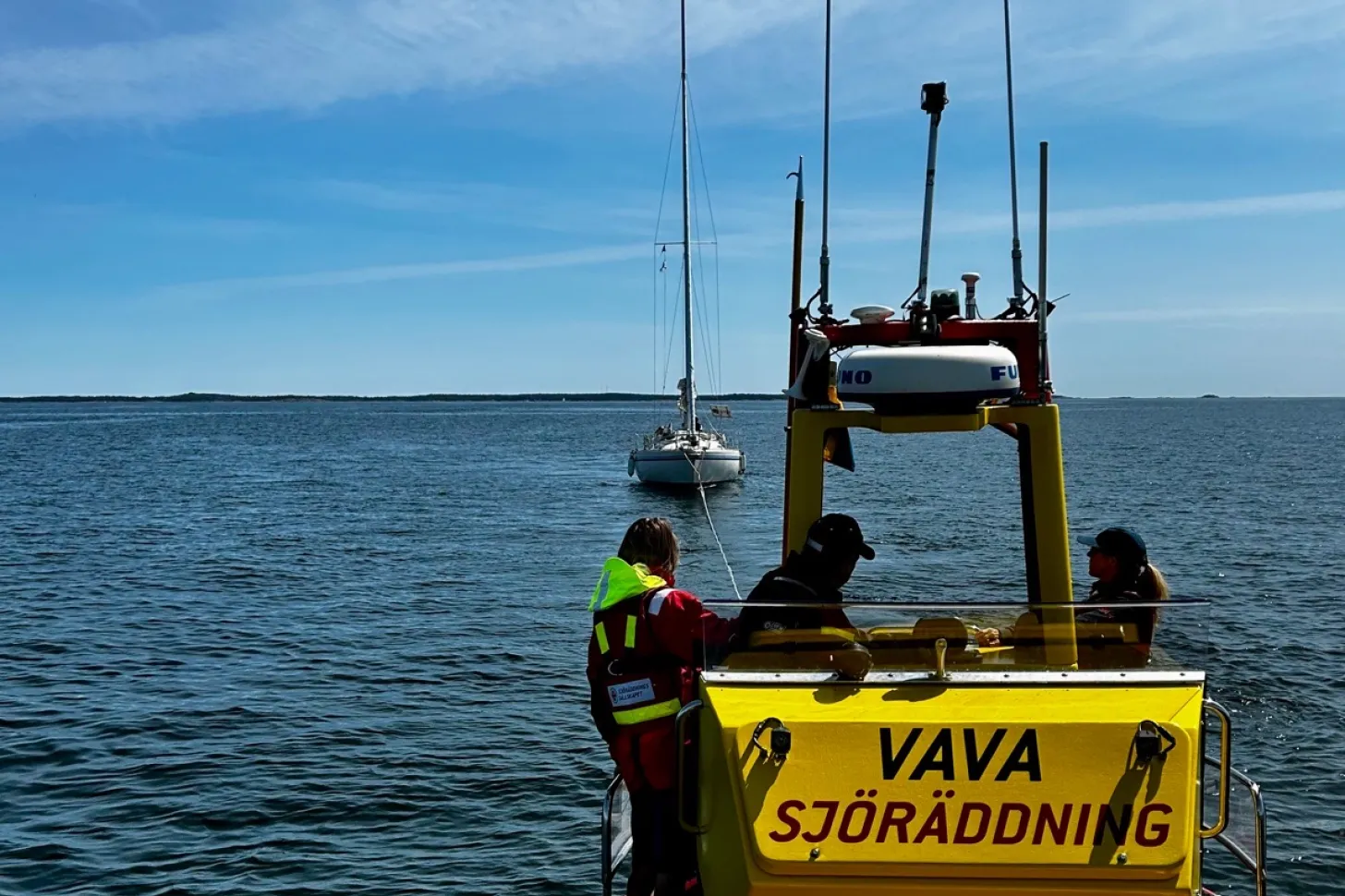 Jourtelefonen ringer 11:15 då vi är på väg för att hjälpa en barnfamilj med motorproblem i Rassa vikar. Det är Sjöräddningssällskapets medlemservice som fått ett samtal från en segelbåt vilken är på väg till gästhamnen i Nynäshamn och nu fått probelm med framdriften. Vi ringer upp segelbåten och meddelar att vi är på annat uppdrag och kontorllerar så det inte är något nödläge eller analkande sådant. Väl framme hos segelbåten har de en bit kvar att segla, men det är nästan ingen vind så Rescue Vava med besättning bogserar sista biten till hamn där segelbåten sedan koppas mot sidan på Rescue Vava för att sedan angöra gästhamnen.