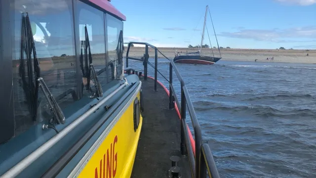 Under måndagseftermiddagen inkom larm från Sjö- och flygräddningscentralen (JRCC) om en segelbåt som gått på grund norr om Byxelkrok med nio personer ombord. Kustbevakningens KBV 431 var först på plats och kunde kontrollera situationen samt sätta över två personer ombord för att stabilisera läget. Kort därefter anslöt Rescue Burre från Figeholm efter drygt 30 minuters gång i stökig sjö. Tillsammans kopplades bogsertross, segelbåten drogs av grundet och bogserades till Byxelkrok. Vi vill rikta ett stort tack till besättningen på KBV 431 för ett mycket gott samarbete som gjorde att situationen kunde lösas tryggt och säkert.