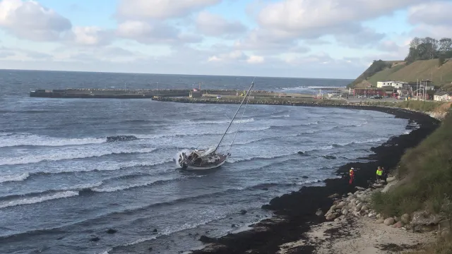 På tisdagsmorgonen rycker de frivilliga sjöräddarna i Ystad ut. En segelbåt ses segla rakt upp på land vid Kåseberga. På plats kunde vi snabbt se att det inte var någon fara för liv. Hjälper haveristen till Kåseberga hamn.