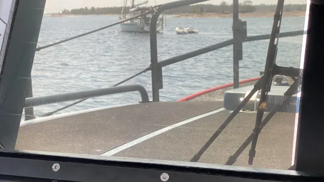Strax efter lunch blir vi kontaktade av Medlemscentralen gällande en 50 fot segelbåt på 22 ton som gått på grund.