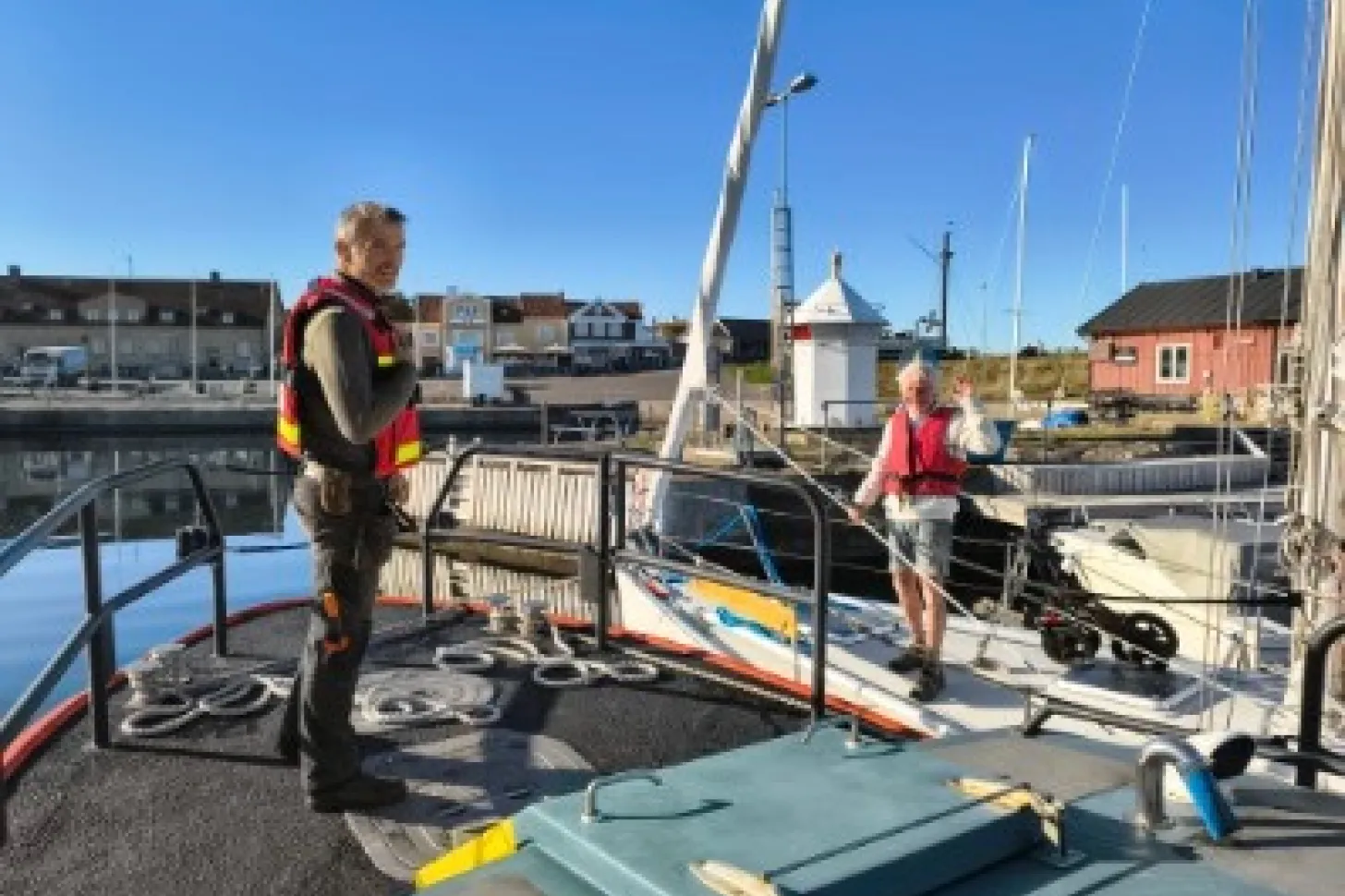 Segelbåt som låg ankrad i Kappelhamn. Hade ingen ström i båten och kunde inte starta motorn. Bogserat in till Torekov.