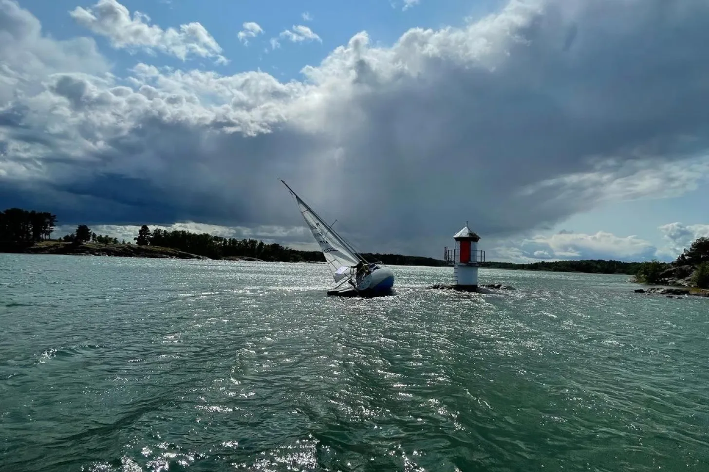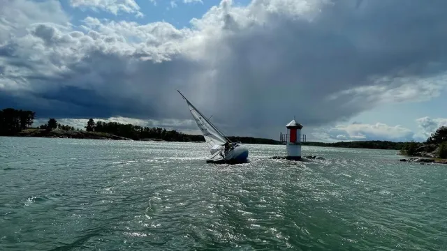 Vid 15-tiden på torsdag blir vi utlarmade av JRCC (Flyg- och Sjöräddningscentralen) då en segelbåt gått omkull i en stormby och seglat upp på grund lite norr om Arkösund. Vi avgår med Rescue Ingrid af Slättö och Rescue Ingegerd Ramstedt och går mot positionen. En privatperson har redan varit framme och kontrollerat att ingen var skadad men båten måste dras loss från grundet. Rescue Ingrid af Slättö går fram till haveristen och kontrollerar båten och skepparen kopplar sedan bogseringstampen och lyckas dra loss segelbåten. Efter kontroll av roder och motor kunde haveristen gå för motor till sin hemmahamn i Arkösund. Vi återgår till stationen.