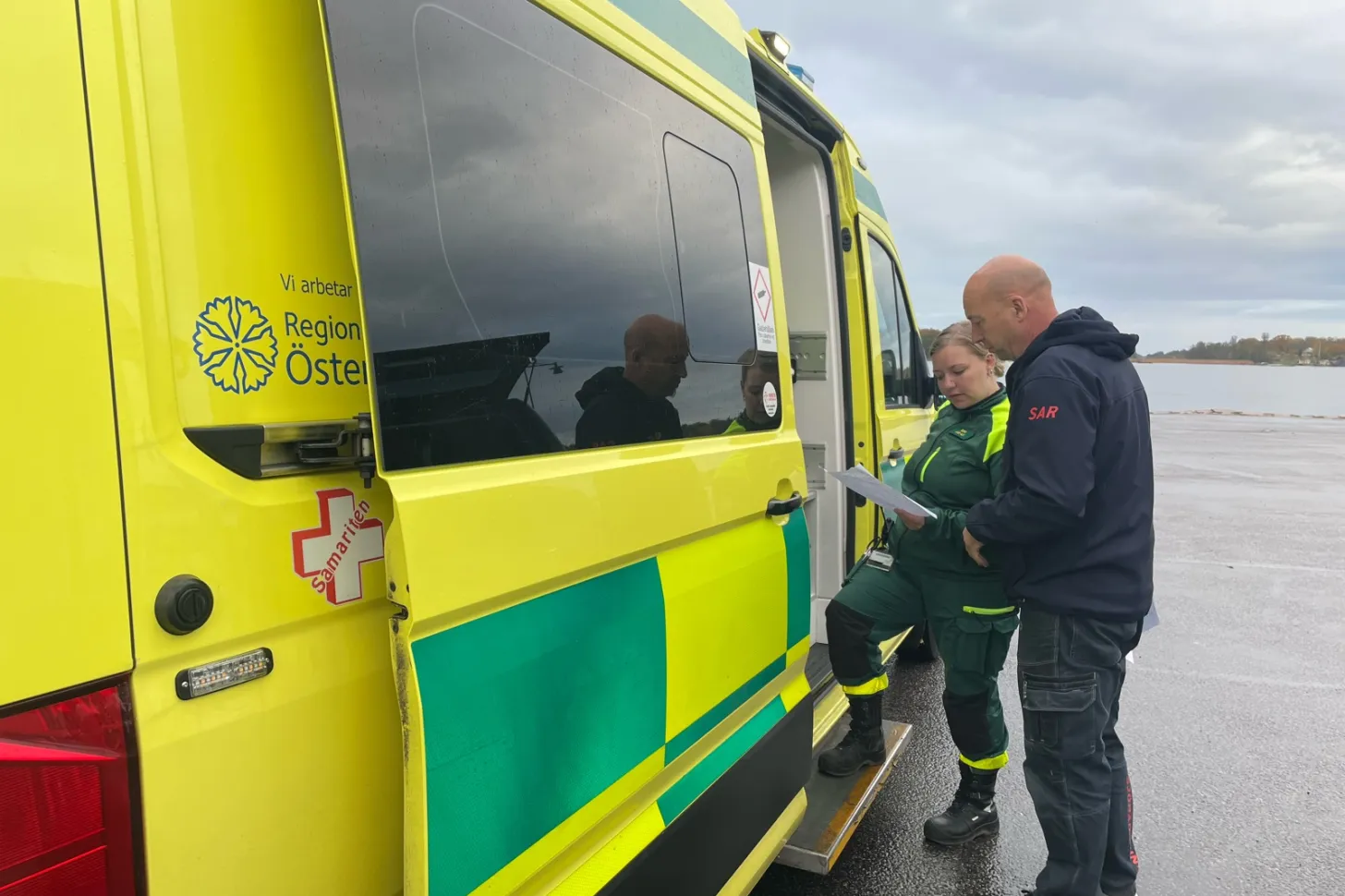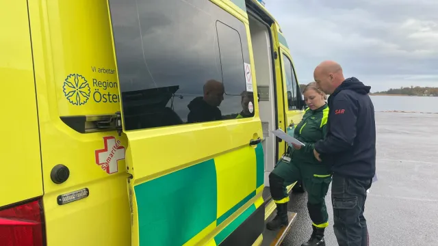 På söndagsmorgonen klockan 08.05 önskar SOS Alarm vår hjälp med en sjuktransport strax syd om Arkösund. Vi avgår med Rescue Ingegerd Ramstedt och på plats tar vi ombord den drabbade och möter sedan upp Ambulans 9110 i Arkösund för vidare transport till sjukhus.