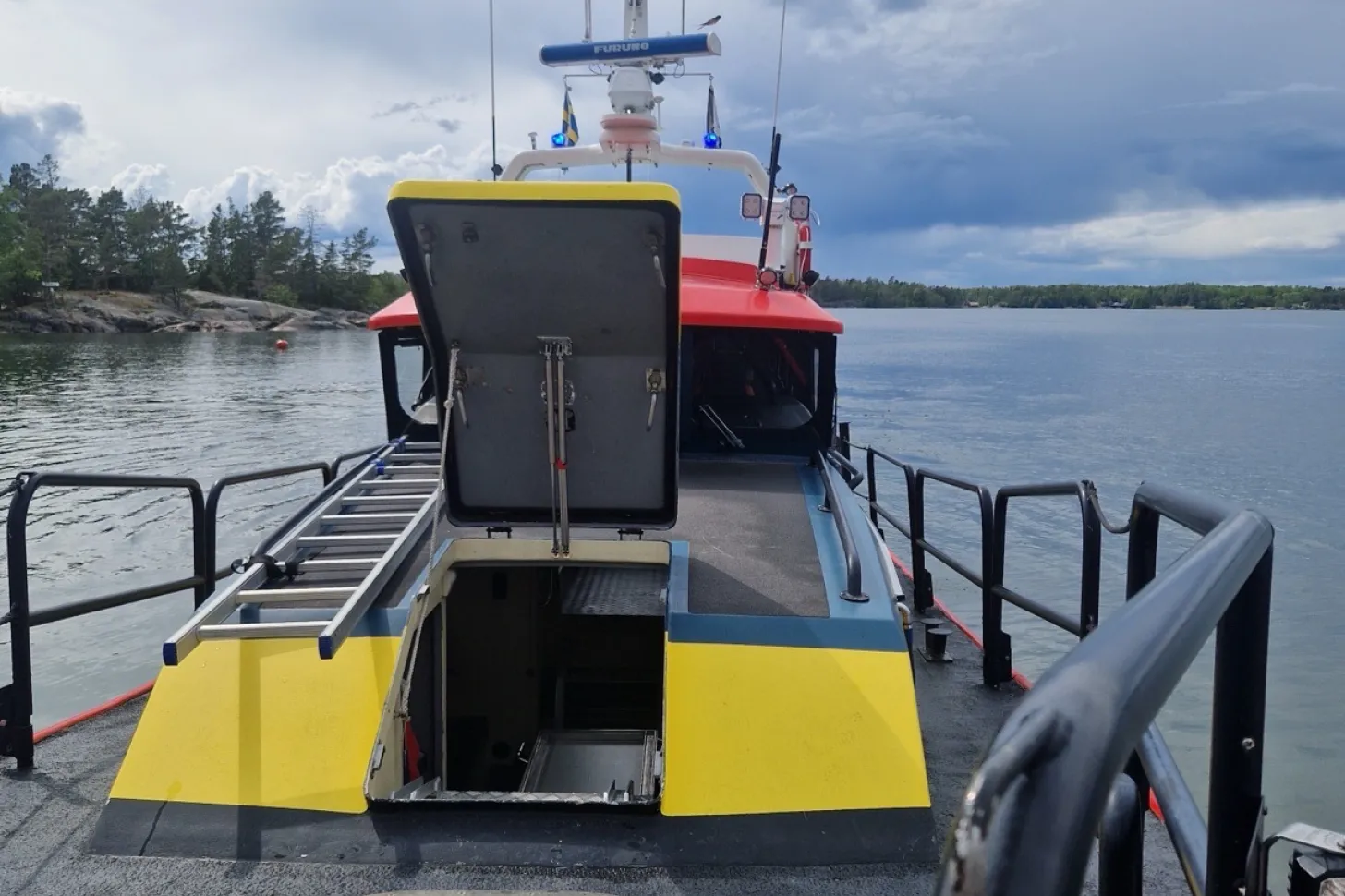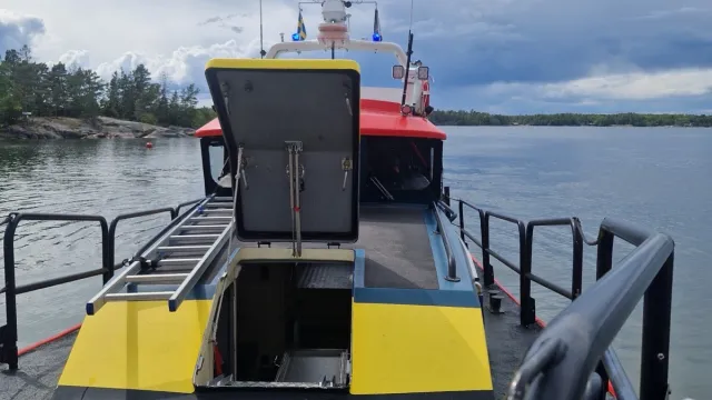Under eftermiddagen blir jourskepparen på RS Öregrund uppringd av Flyg- och Sjöräddningscentralen (JRCC). Den här gången är det sjukvårdens larmcentral i Uppsala som vill ha hjälp med en sjuktransport från en ö där det finns en skadad person. Helikoptern landar på Vässarön där man landat många gånger tidigare och sedan kan läkaren och sjuksköterskan tas via sjöräddningsbåt från Vässarö till den ö där den skadade personen fanns. Väl på plats gjorde ambulanspersonalen ett första omhändertagande och med gemensamma krafter bars personen ner i Rescue Olof Wallenius, som väntade vid ön. Därefter återgår vi till Vässarö och den skadade personen får åka ATV släp till den äng där helikoptern landat. Vi tackar gänget på ambulanshelikoptern för mycket bra samarbete!