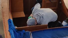 Träbåt med läckage.