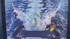 Tre i vattnet efter färd med vattenskoter