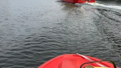 Upphittad båt med motorn igång